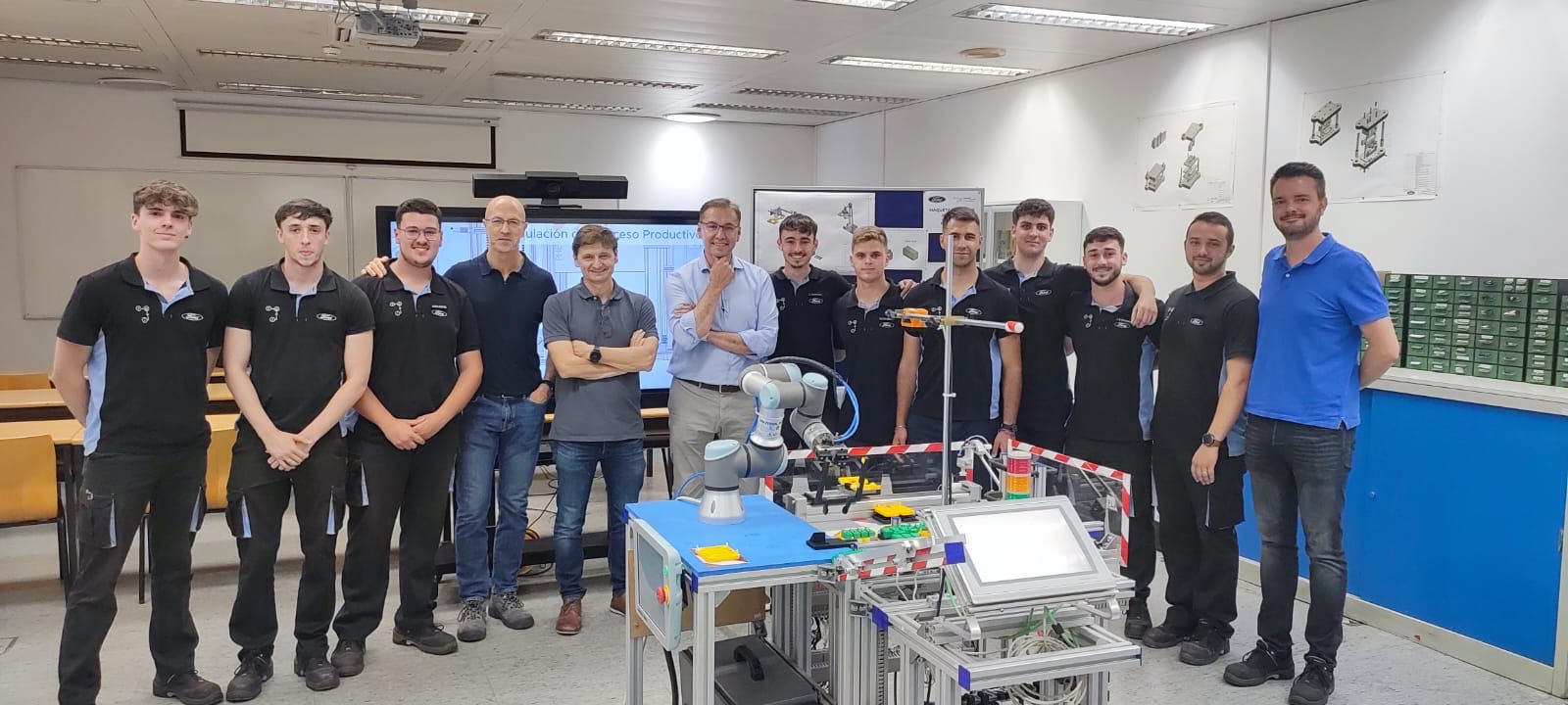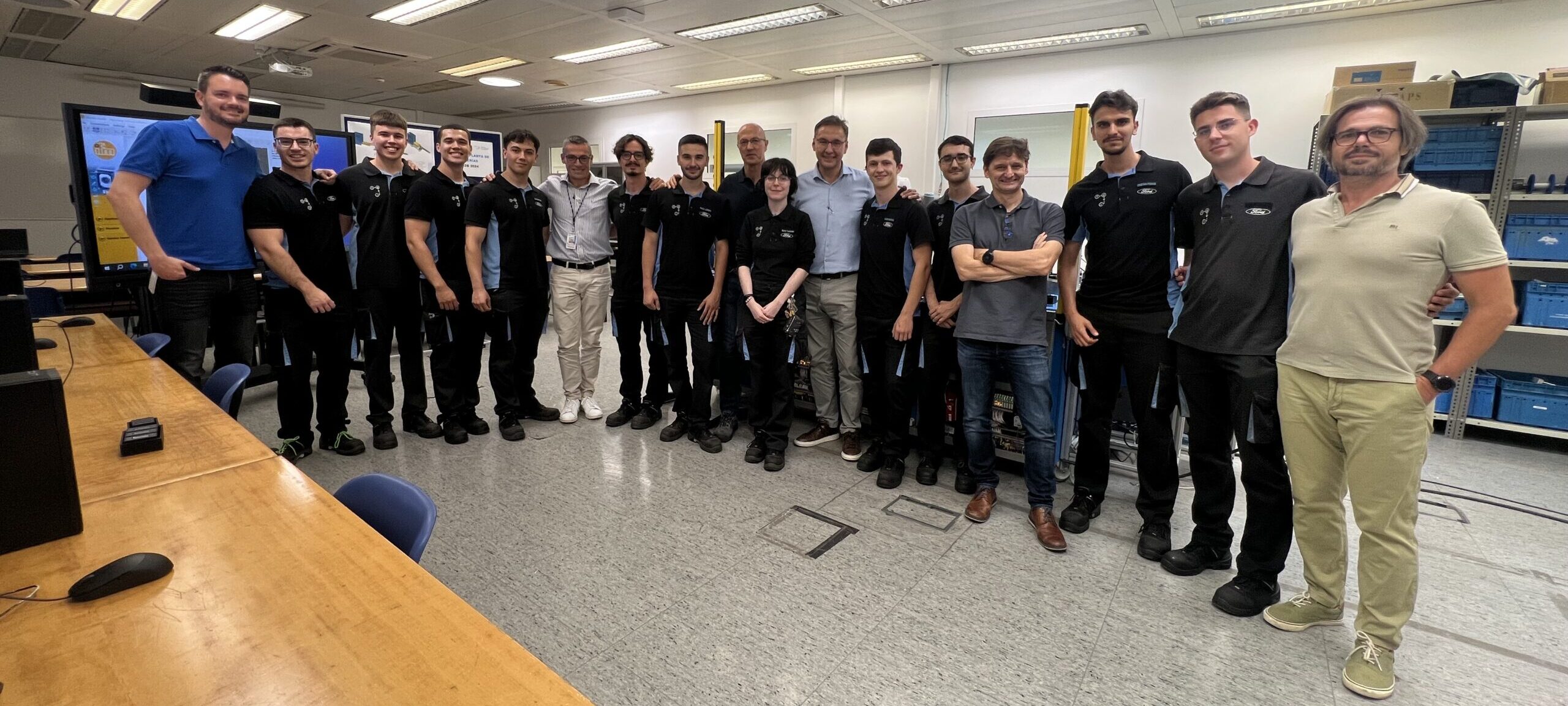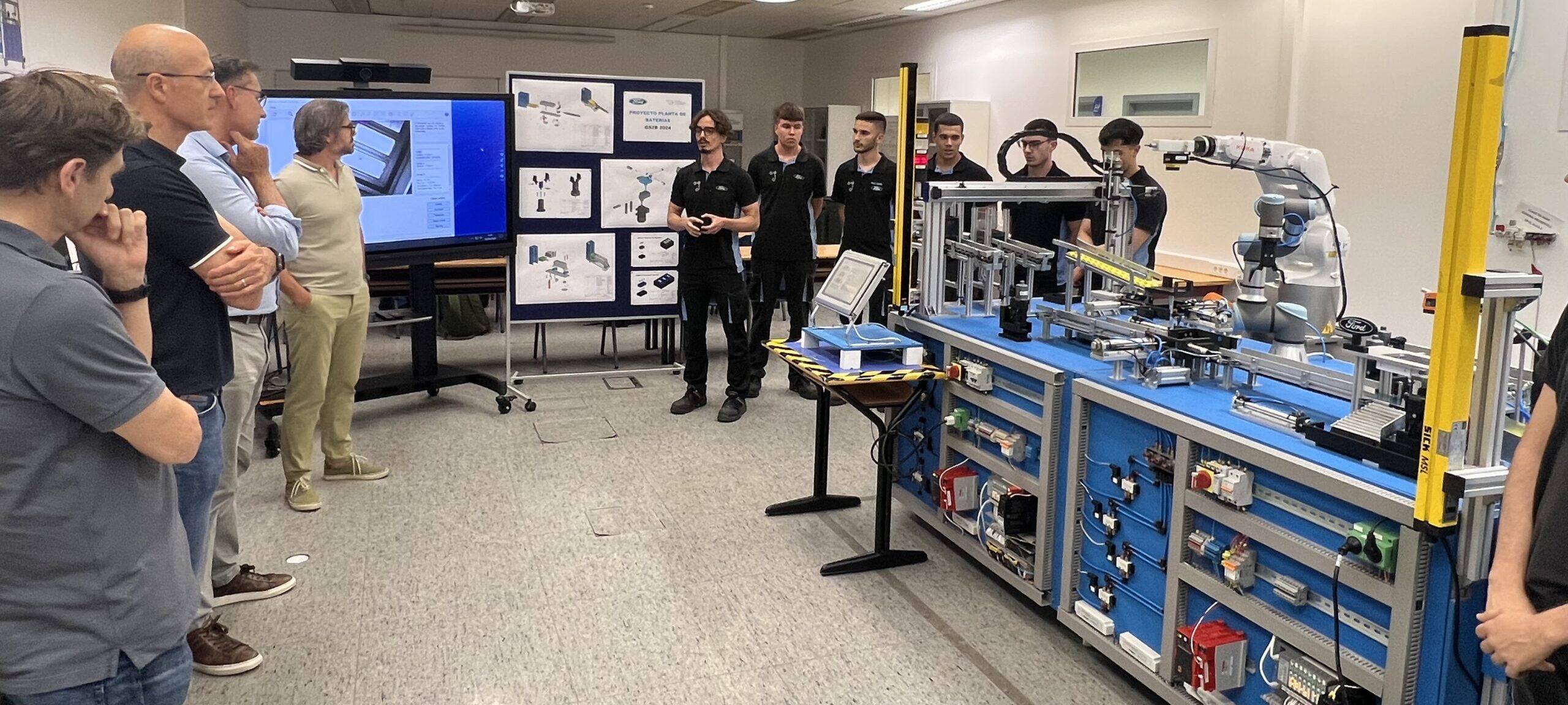 El pasado viernes 28 de junio de 2024, los alumnos de 2º curso del Grado Superior en Mecatrónica Industrial de la Escuela de Aprendices tuvieron la oportunidad de presentar sus proyectos finales ante la gerencia de Ford Almussafes. Este evento, celebrado en el Centro de Formación Profesional Ford España, marcó un momento crucial en la formación de nuestros estudiantes, brindándoles una plataforma para demostrar las habilidades técnicas y de softskills adquiridas durante los dos años de formación.